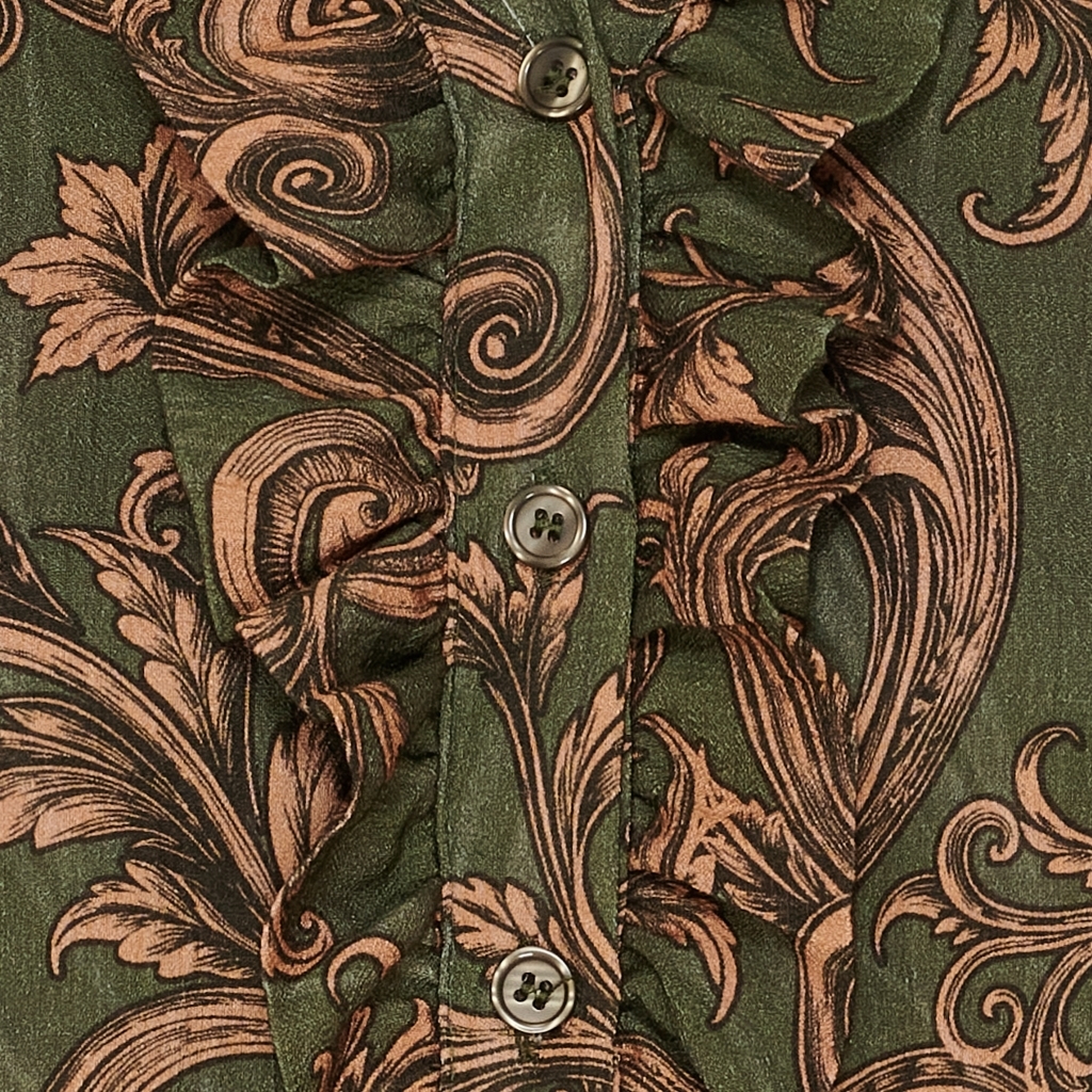 Elegant og feminin skjorte med et smukt print i skønne farver. Joceline Shirt har en stilfuld V-udskæring med dekorative flæser, der tilfører et sofistikeret touch. De lange ærmer afsluttes med elastik, hvilket skaber en let puff-effekt, mens den løse pasform sikrer komfort og en flatterende silhuet. Perfekt til både hverdag og særlige anledninger – style den med et par jeans for et casual look eller en nederdel for et mere feminint udtryk.
