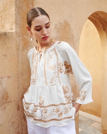 Vores sortiment af overdele henvender sig til den stilbevidste kvinde, der ikke ønsker at gå på kompromis, når det kommer til beklædning. Udvalget henvender sig også til kvinden, der gerne vil sætte streg under sin personlige stil med fede items, der er lidt ud over det sædvanlige. Vælg mellem stilfulde blazere og lune frakker. Du kan også finde elegante skjorter, fede T-shirts og unikke toppe, der kan bruges alene såvel som med en cardigan over. Ydermere har vi også et stort udvalg af de fineste kjoler.