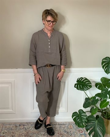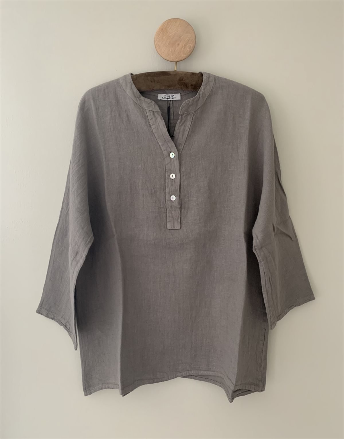 Skøn skjorte fra PIRO. Skjorten er gennemknappet og er lidt længere bagtil end fortil. Hør er den skønneste beklædnings genstand man kan ønske sig om sommeren da det er til at ånde i. ET MUST HAVE i garderoben.