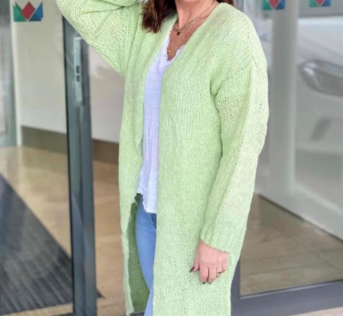 Produkt nummer: STAJL Lang Strik cardigan Lime 6002L