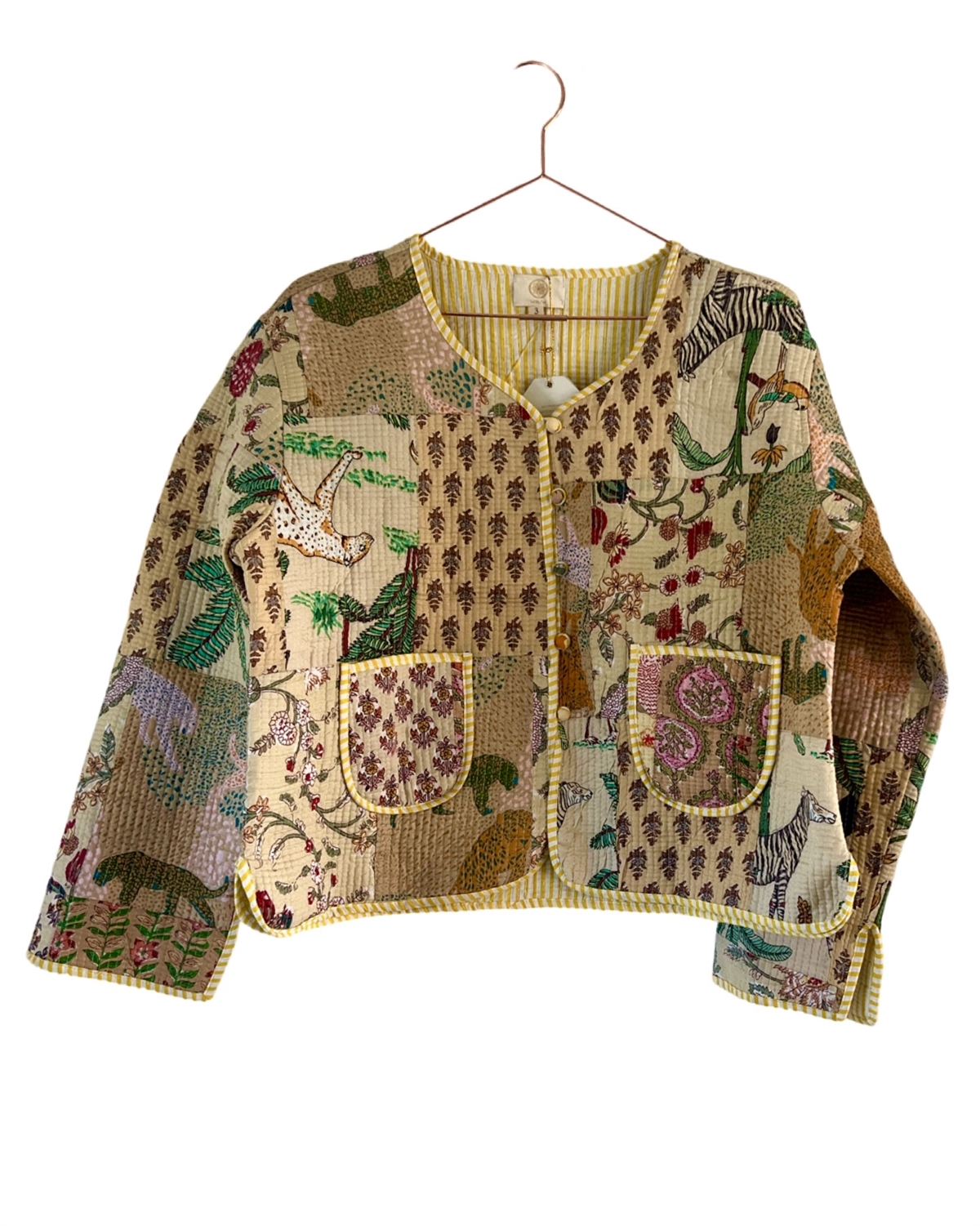 OBS. Da jakkerne er håndlavet er der ingen jakker der er ens. Bundfarven på jakkerne er den samme, hvoraf mønstret og stoffet er unikt. (Så alle er forkellige)